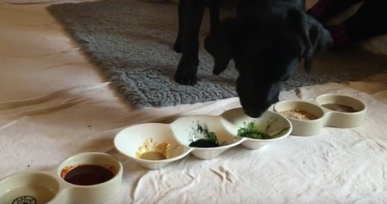 Chien choisissant des poudres de plantes et minéraux (avec Ingraham)