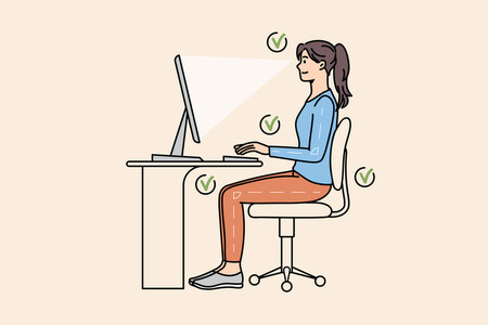 Conseil : Placez votre écran devant vous, à hauteur d’yeux, bras parallèles et plaquez vos omoplates contre le dossier de la chaise. Évitez le travail prolongé sur ordinateur portable.