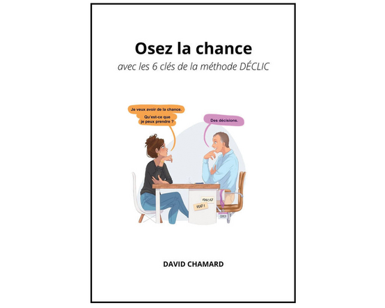 Dans Osez la chance, David Chamard présente les 6 clés de sa méthode, Déclic, afin d’aider le lecteur à trouver les voies pour réussir ses projets. Il l’amène à comprendre le jeu permanent qui s’opère dans les phases décisives de sa vie ainsi que la dualité de sa réflexion qui s’articule entre deux forces motrices : celle d’un " saboteur " qui l’empêche d’avancer et met en avant ses pensées limitantes, et celle d’un " allié " qui lui donne de l’optimisme et l’accompagne vers sa chance. L’analyse de cette double inclination va l’aider à trouver une nouvelle lecture de ses points de blocage, qui sont autant de portes à ouvrir pour comprendre une pédagogie décrite pas à pas.