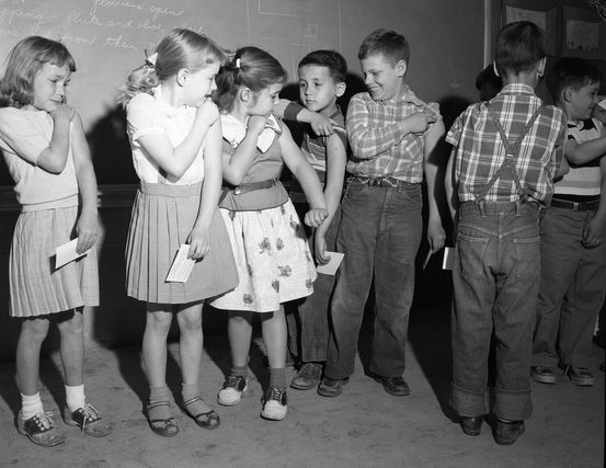 Un article d’un groupe de médecins britanniques publié dans le British Medical Journal en 1959, faisait le point sur les épidémies de rougeole en ces termes : « La rougeole est une maladie bénigne, probablement la plus commune au monde. Il y a peu de complications et il ne vaut pas la peine d’essayer d’en éviter la contagion. » Plus loin, les auteurs ajoutent même que « les mères étaient ravies de voir comment la santé de leur enfant s’était fortifiée après avoir traversé la maladie ». (3) Mais d’autres voyaient ce vaccin comme un nouveau progrès, et pensaient que l’on pourrait éradiquer la maladie en une année seulement… Pourquoi pas ?